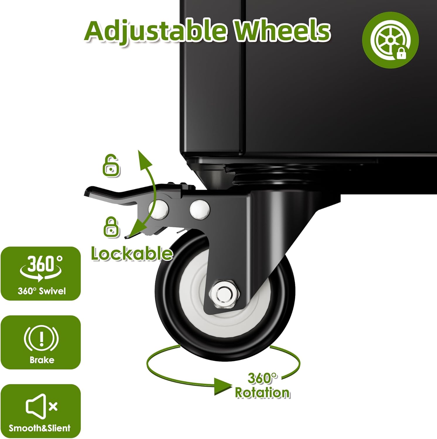 Metal handle lock: Metal wheeled cleaning cabinet is equipped with a sturdy handle lock that effectively locks in cleaning agents, chemicals or valuable tools, preventing children from touching or unauthorized use, and ensuring the safety of the home or workplace