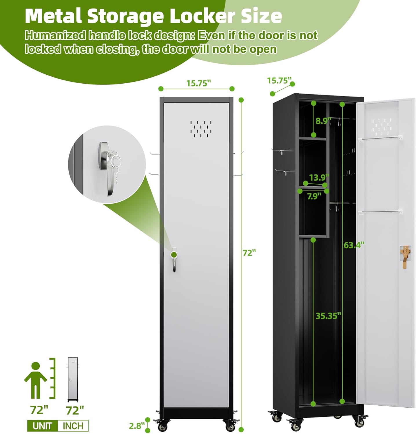 Installation required: The dimensions of the metal storage cabinet after installation are 71.65"H ×15.75"W×15.75"D, providing sufficient vertical space for storing long-handled tools. The overall structure is stable (about 45 pounds), with strong load-bearing capacity, meeting the heavy cleaning needs of professionals or households. If you encounter any problems during installation, you can ask the after-sales team for support