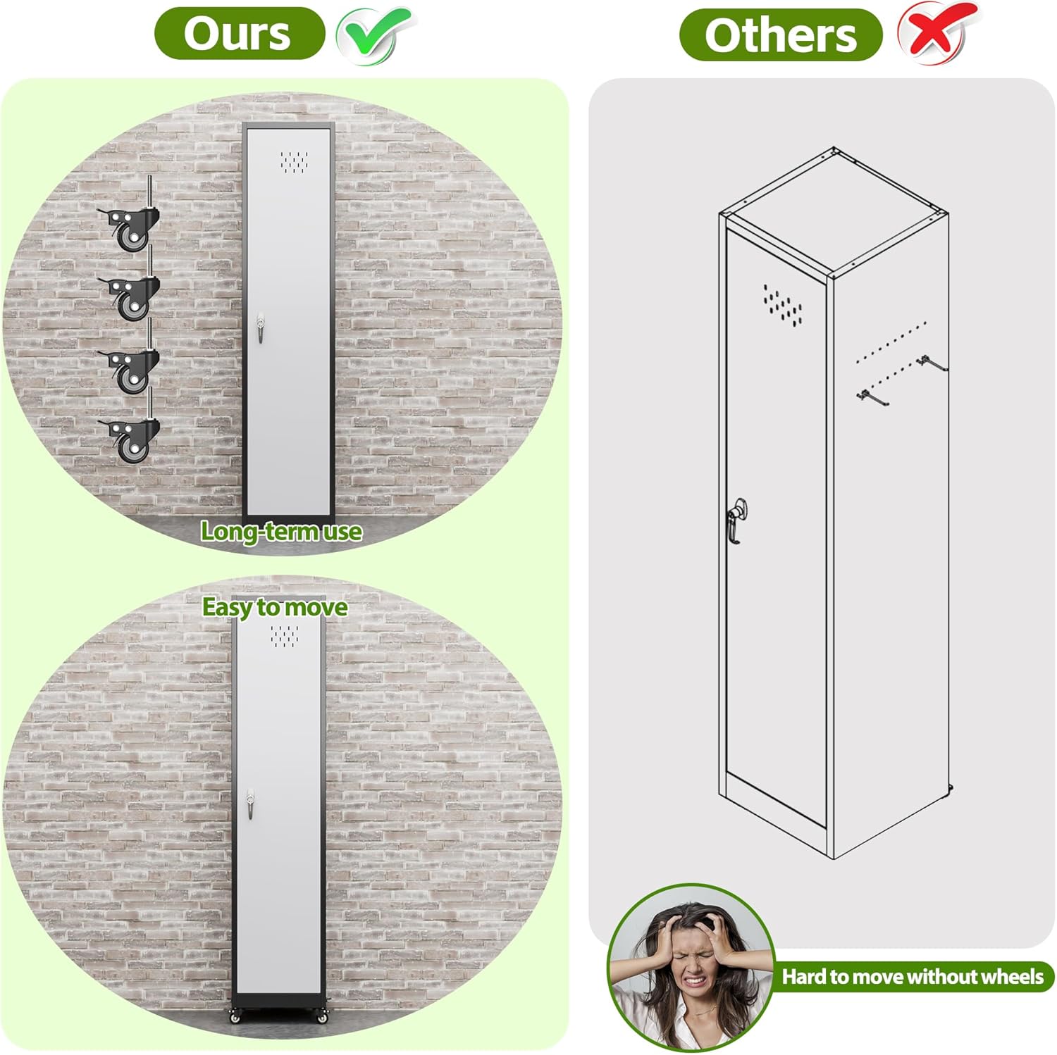 Easy to move and place anywhere: Metal cleaning cabinet's bottom is equipped with four movable and detachable casters, allowing you to effortlessly push the entire storage cabinet to any area, corner or storage room that needs cleaning. After the work is completed, it can be easily pushed back to its original position, saying goodbye to the laborious handling