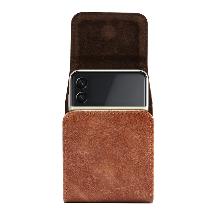 Applicable Flip Screen Mobile Phone Bag Hanging Leather Perforating Folding Waist Bag