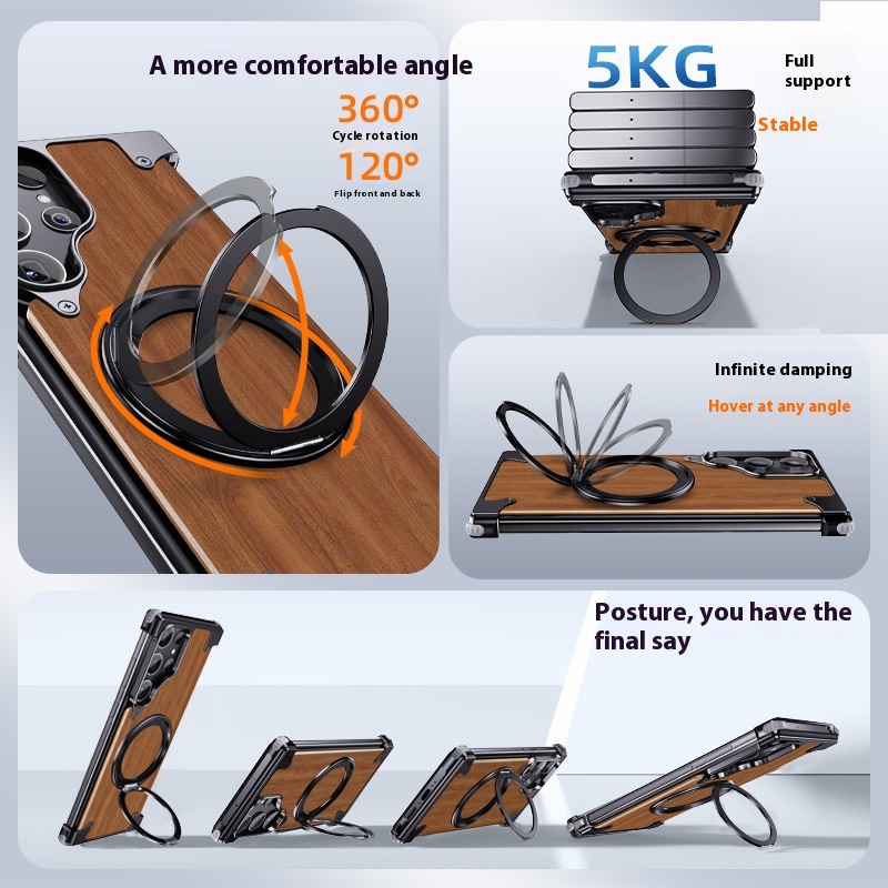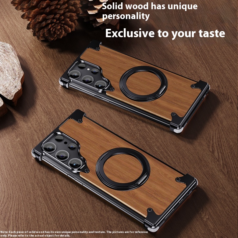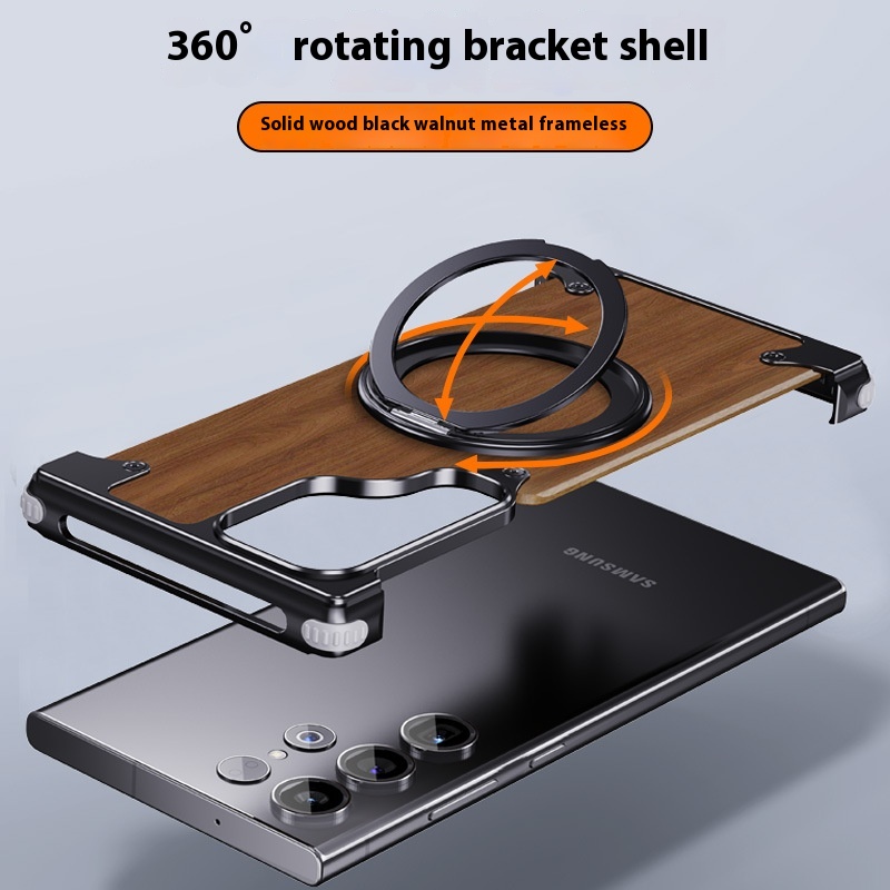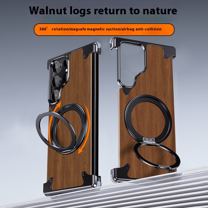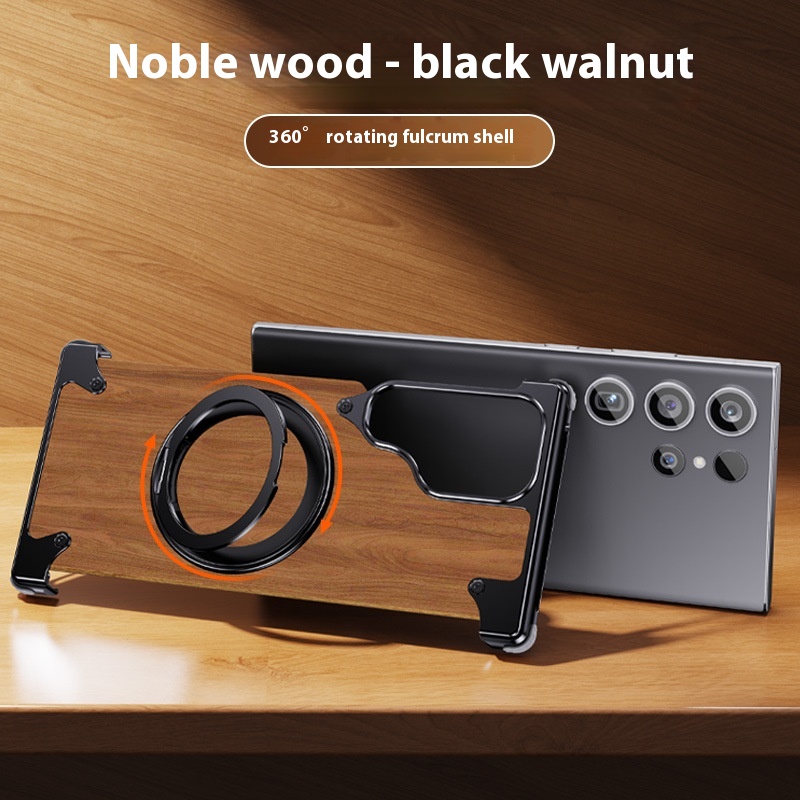Color: Black-360 degrees rotary magnetic adhesive bracket [walnut solid wood/metal frameless]]