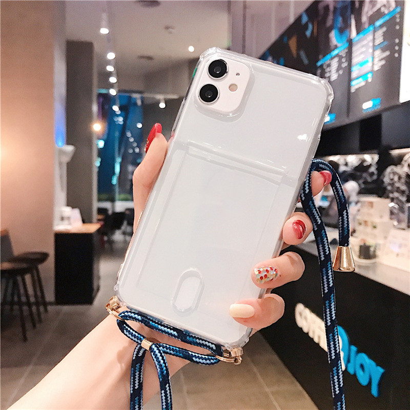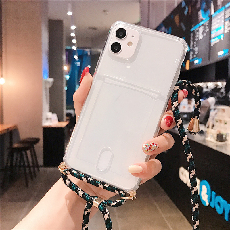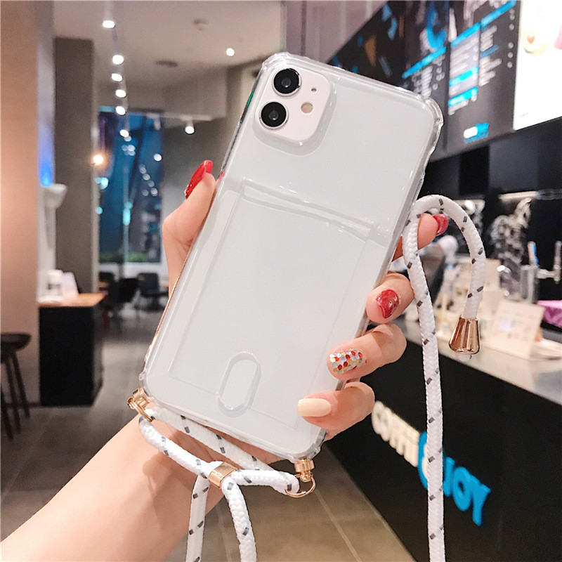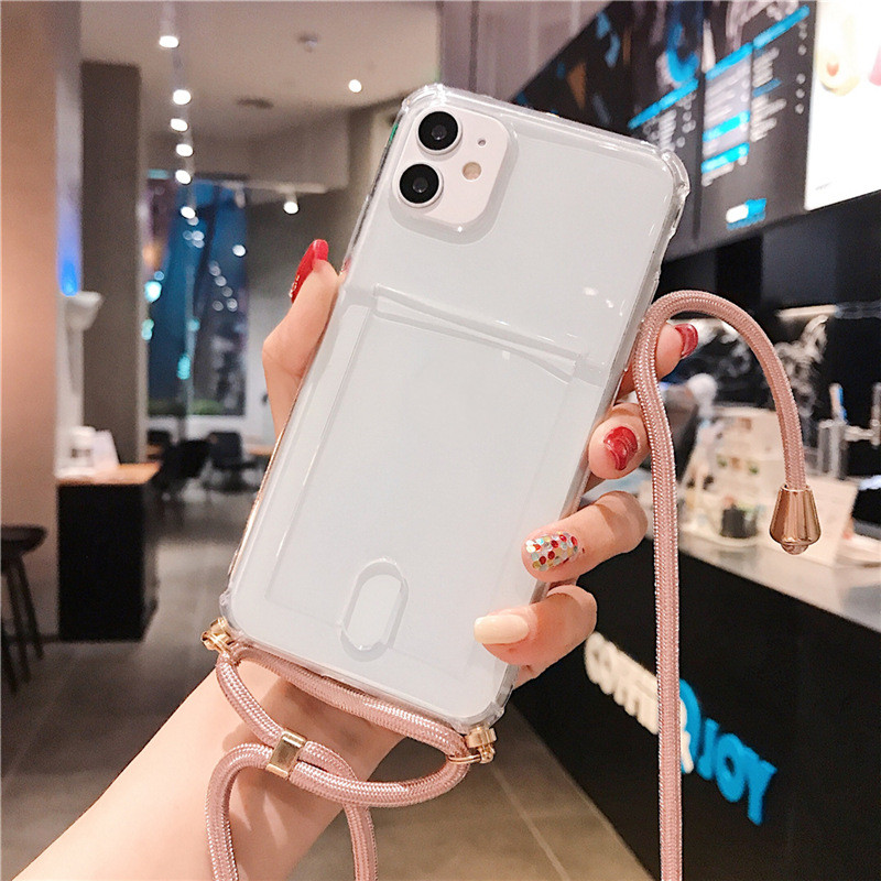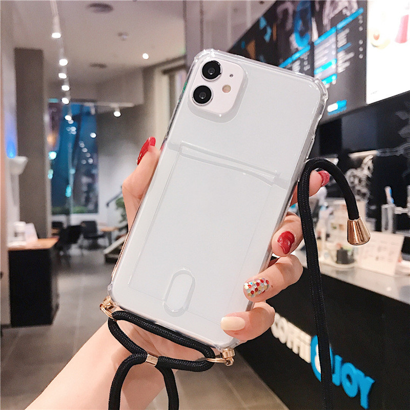 Popular elements: solid color, card slot card transparent mobile phone case with lanyard