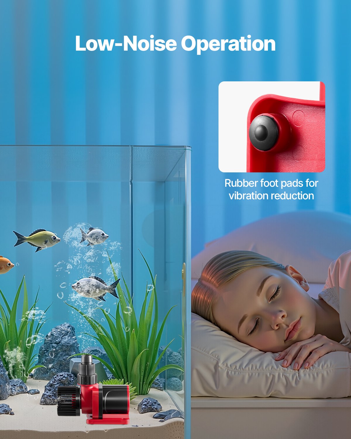 Rubber Suction Cups: Equipped with 4 strong suction cups, the aquarium water pump can be securely fixed in place without extra tools. It supports both horizontal and vertical placements, giving you complete control over water flow direction