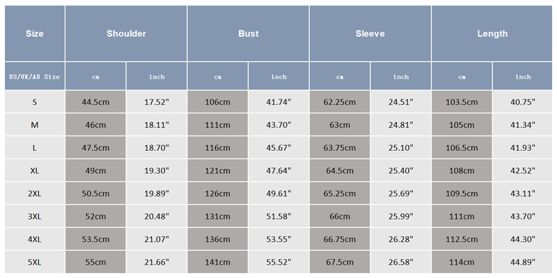 Size; S, M, L, XL, XXL, XXXL, XXXXL, 5XL