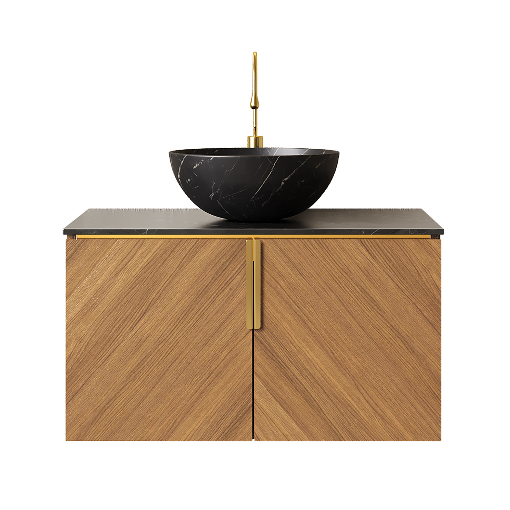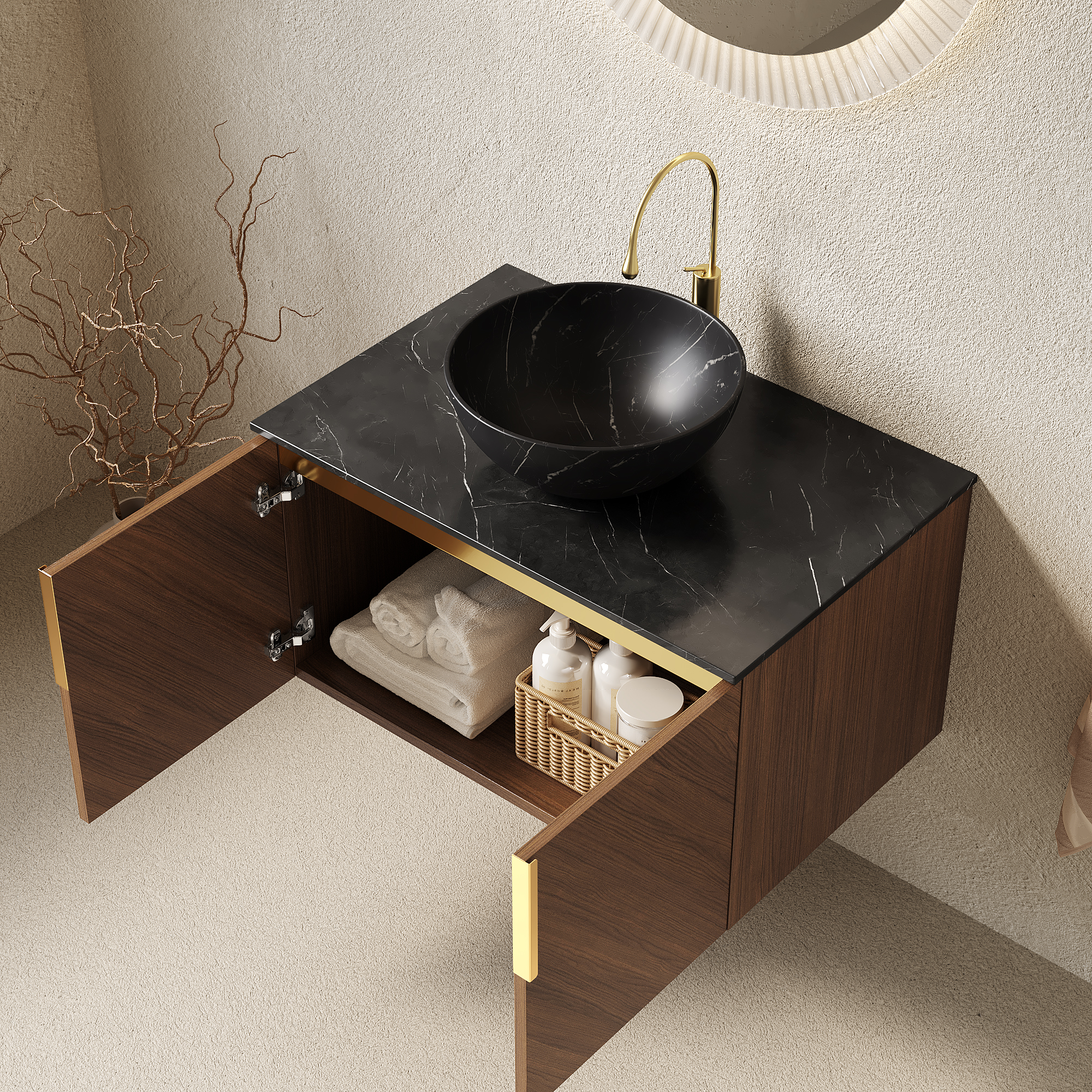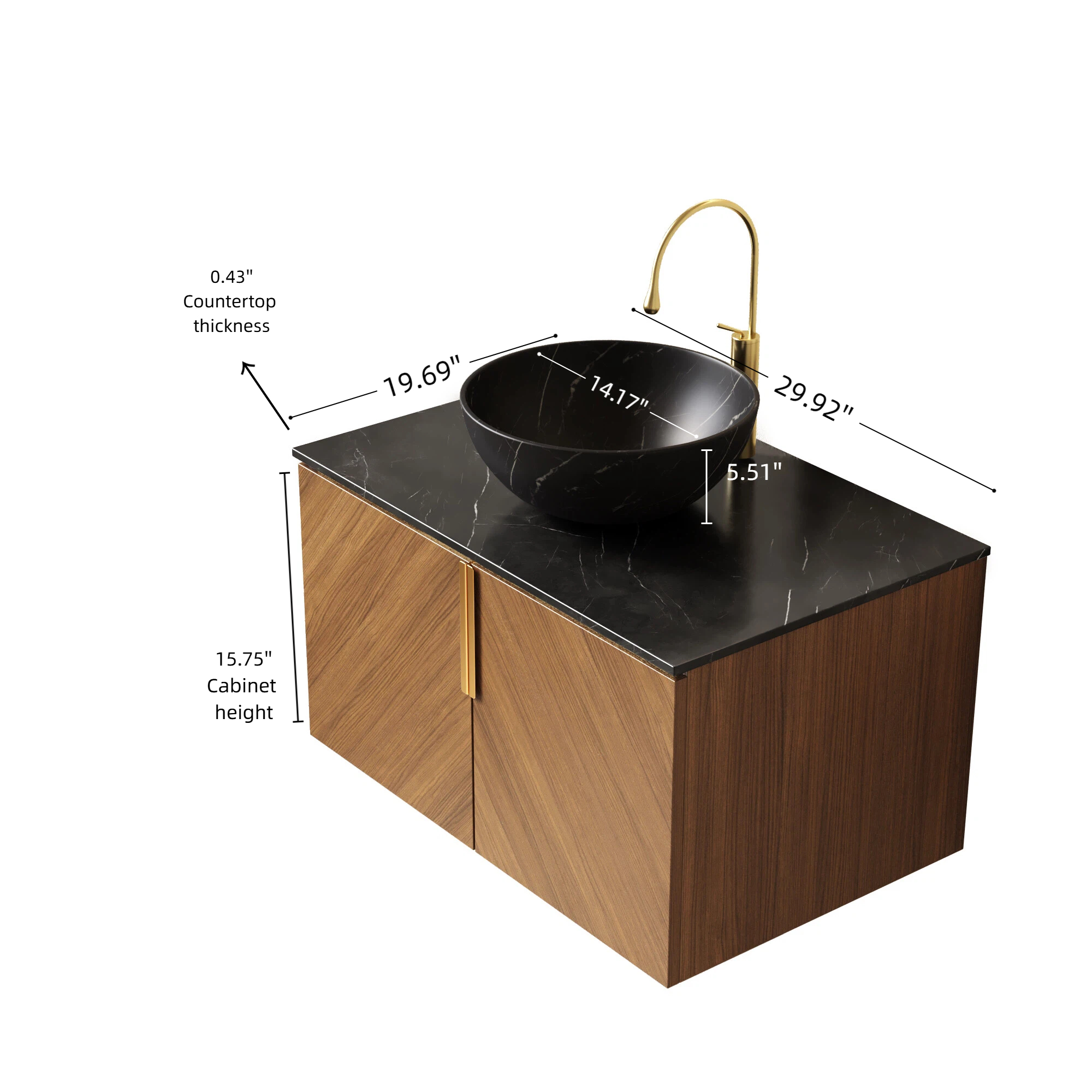 Product Name:ARAI 30" Bathroom Vanity&Sink, Floating Plywood Bathroom Storage Cabinet with 2 Doors, Black Sintered Stone Top&Black Bowl Ceramic Basin with Stone Pattern, Brown Oak Woodgrain (New SKU)