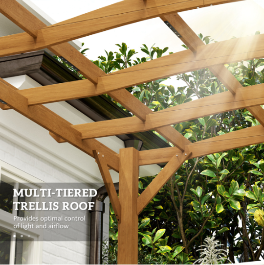 - Open design offers a space to sit under vine-ripened shade