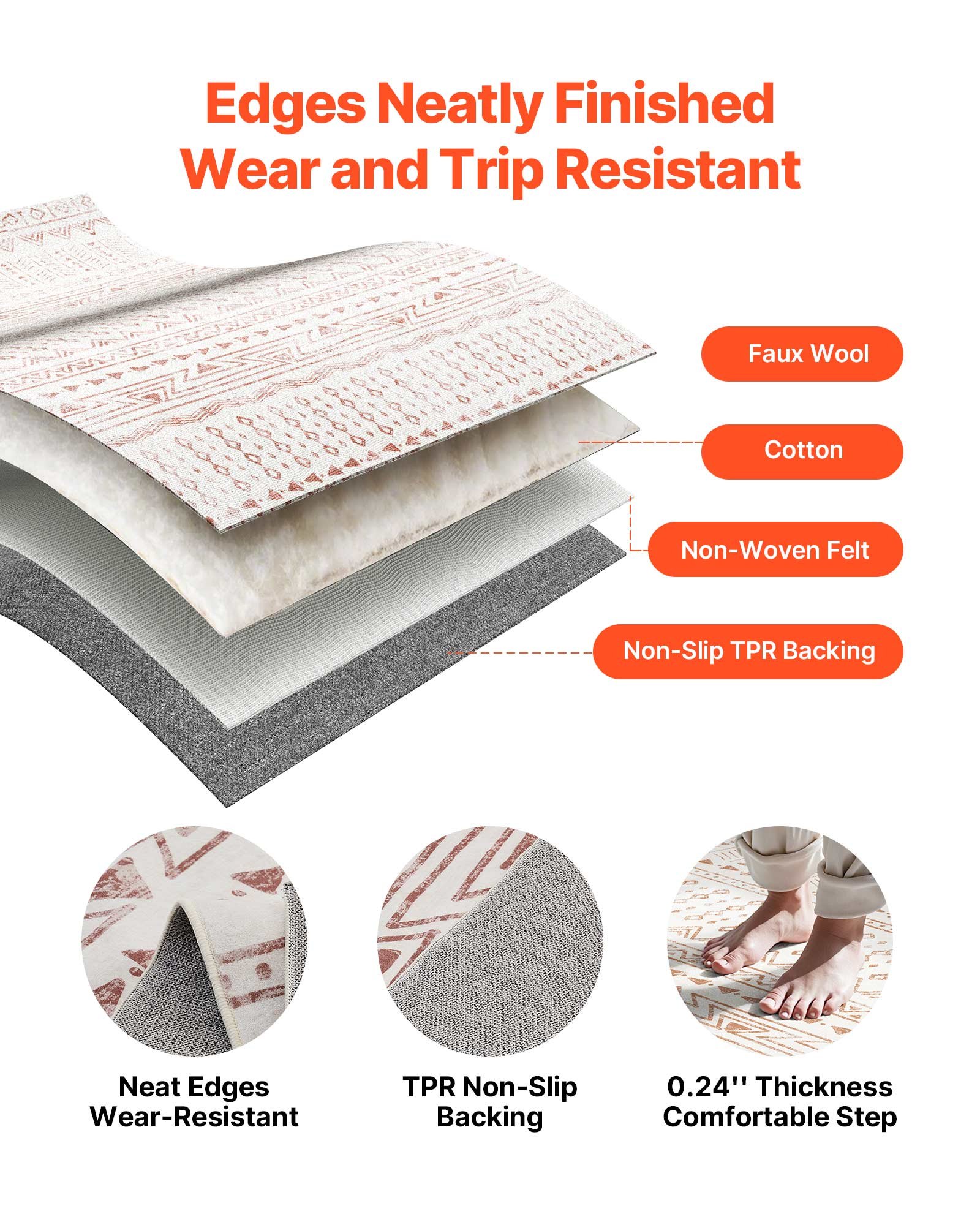Features & Details CloudWalk Comfort: Cradling your feet in baby-blanket softness, our washable rug's velvety short pile feels like a hug for your floors. Hypoallergenic tight weave avoids shedding during cleaning, while the sleek 6 mm/0.24 inch profile slips effortlessly under 90% of doors and refuses to leave "furniture tattoos" on your floors Style Chameleon: Whether your heart beats for minimalist modern or cozy retro, our washable rugs transform rooms like magic. Mix-n-match sizes from living room centerpieces to bedroom accents, your interior design dreams just got a walkable canvas Machine Washable: Engineered with TPR-grip backing and luxe faux-cashmere edging that lies obediently flat. Survives washing machines like a champ – wash, spin, gentle shake, done! We recommend avoiding prolonged use of high-powered robot vacuums for cleaning to preserve the rug's pristine condition Multi-Sizes for Your Choice: From cozy 5x7 ft nests to grand 10x14 ft statements, we’ve got your floors covered. Pick your flawless fit for any room’s personality Color Note: Actual rug colors may appear slightly different due to variations in screen resolutions and ambient lighting. Think of it as your rug's handcrafted charm adapting to your space's unique glow