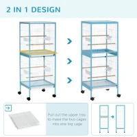 - Large Space: Birds need space not just in height but in width, and 1.7 ft. distance from left to right gives this large bird aviary a grand size in interior space, ensuring comfortable pets. The width lets them fully flap and extend their wings with extra additional space. Each cage contains two wooden perches and two plastic food containers for multiple animals. Pull out the upper tray to make the two cages into a big cage.