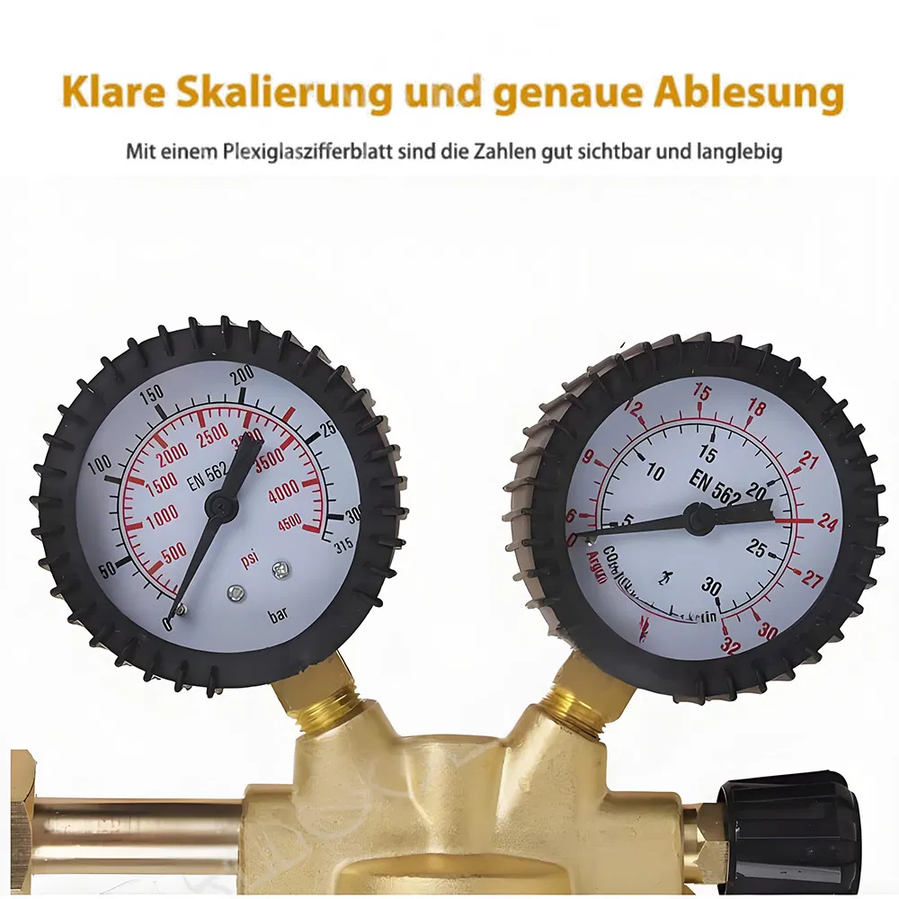 - Reduces and regulates gas pressure for welding work. Maximum bottle pressure gauge: 0-315 bar, flow rate: 0-30 Liters/Minute.