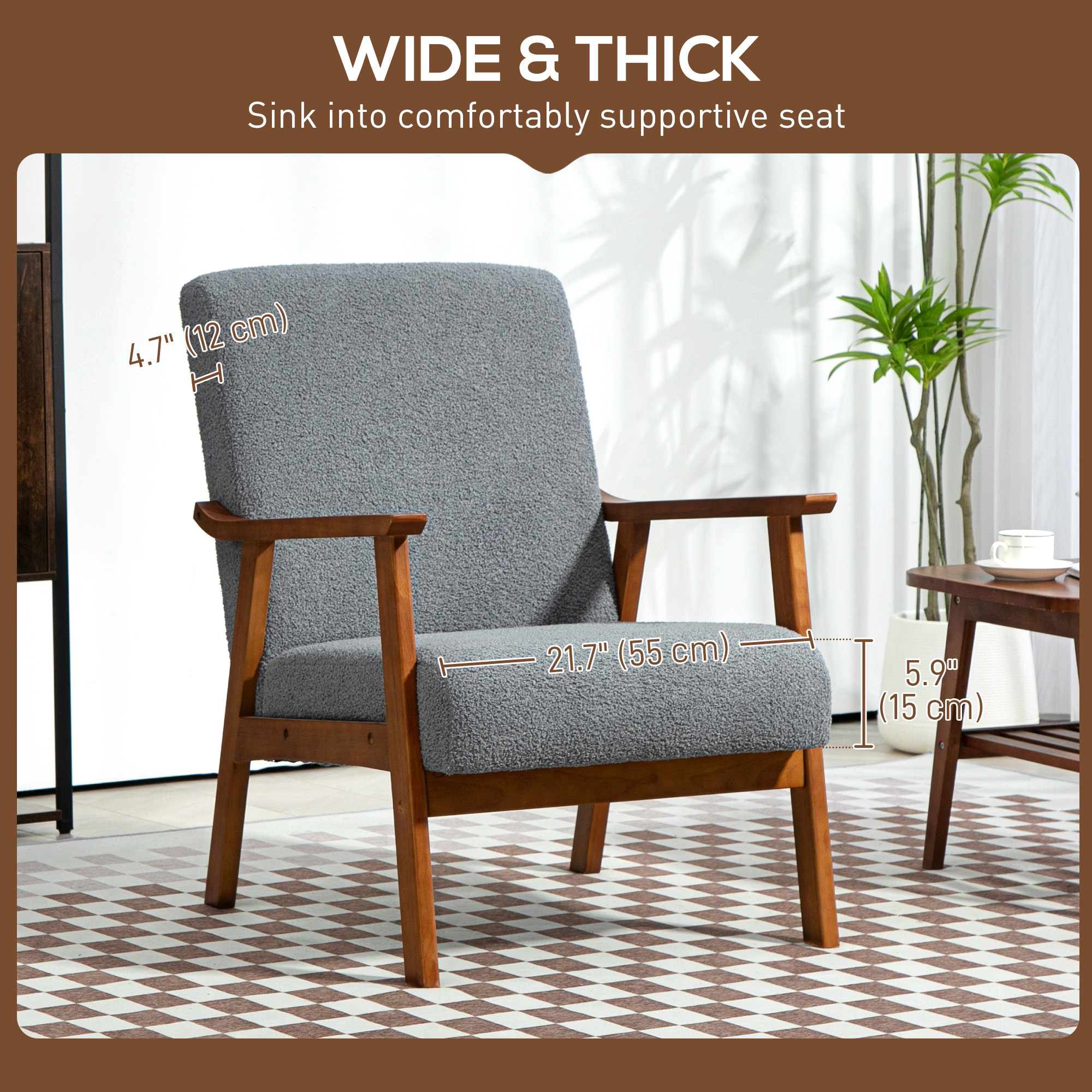 Armchair With Wide Seat, Boucle Accent Chair, Thick Padded Occasional Chair With Solid Wood Frame For Living Room Bedroom Home Office Reception Balcony, Grey