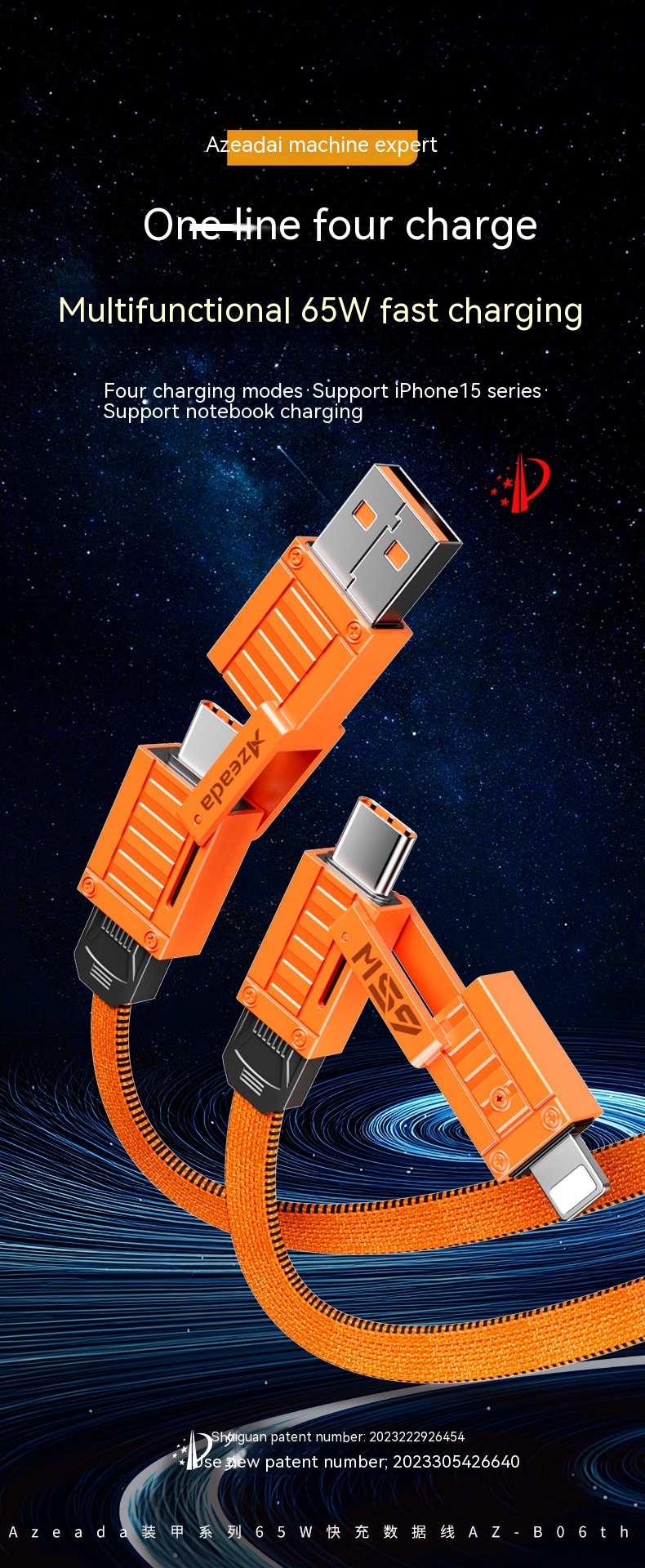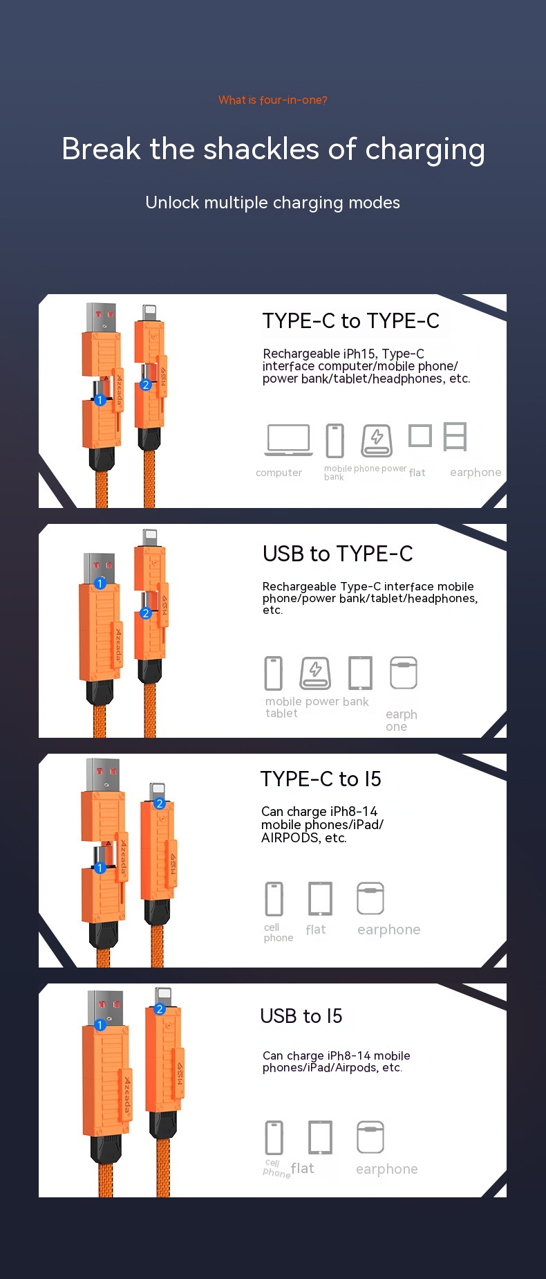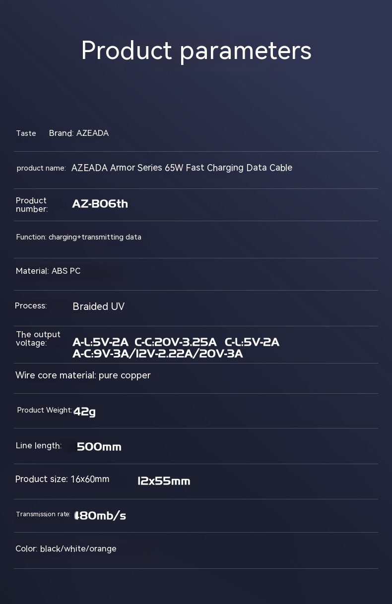 Product information:Features: fast chargeInterface: Lightning,Micro USB,TYPE-CLength: 1.5Material: PC ABS