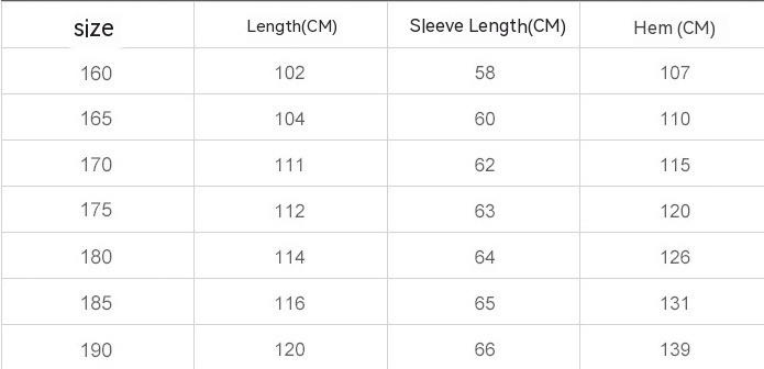 Size: 160/S size, 165/M size, 170/L size, 175/XL size, 180/2XL size, 185/3XL size, 190/4XL size, 195/5XL size