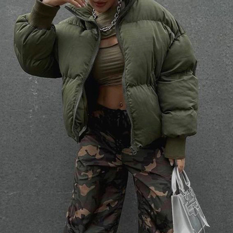 Army Green Loose Warm Casual Baseball Uniform Retro