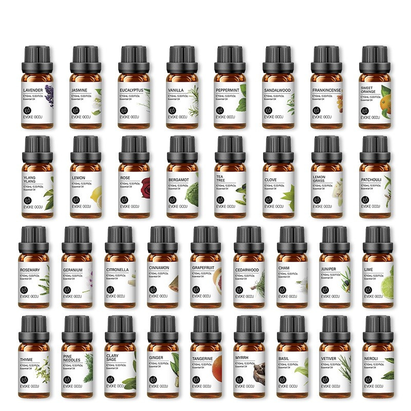 Lavender essential oil 10ml [lavender], clove essential oil 10ml [clove], frankincense essential oil 10ml [frankincense], ylang ylang essential oil 10ml [ylangylang], cedarwood essential oil 10ml [cedarwood], lemongrass essential oil 10ml [lemongrass], peppermint essential oil 10ml [ peppermint], eucalyptus essential oil 10ml [eucalyptus], rosemary essential oil 10ml [rosemary], bergamot essential oil 10ml [bergamot], patchouli essential oil 10ml [patchouli], geranium essential oil 10ml [geranium], grapefruit essential oil 10ml [ grapefruit], tea tree essential oil 10ml [teatree], vanilla essential oil 10ml [vanilla], sweet orange essential oil 10ml [sweetorange], juniper essential oil 10ml [juniper], lemon essential oil 10ml [lemon], sandalwood essential oil 10ml [sandalwood], lemongrass essential oil 10ml [citronella], chamomile essential oil 10ml [chamomile], jasmine essential oil 10ml [jasmine], rose essential oil 10ml [rose], cinnamon essential oil 10ml [cinnamon] (g)