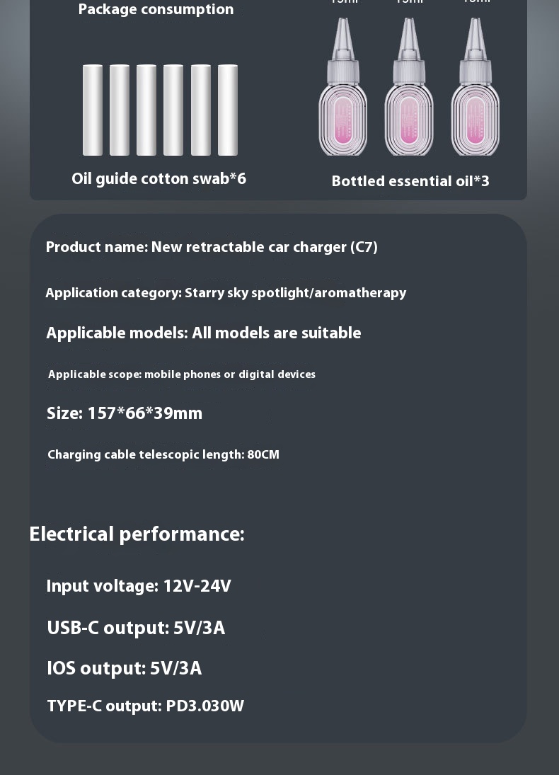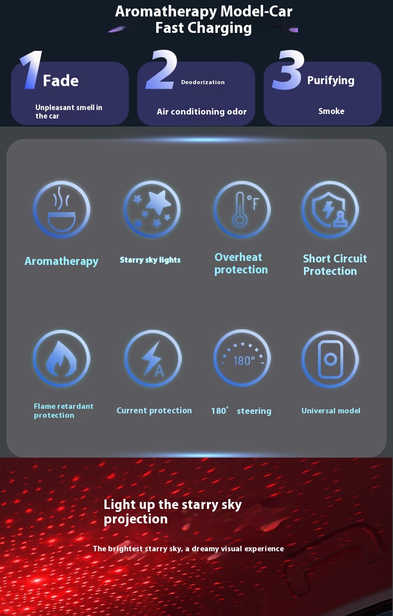 Model: C7 Red Starry Sky Lamp Aromatherapy Car Charger, C7 Purple Starry Sky Lamp Aromatherapy Car Charger