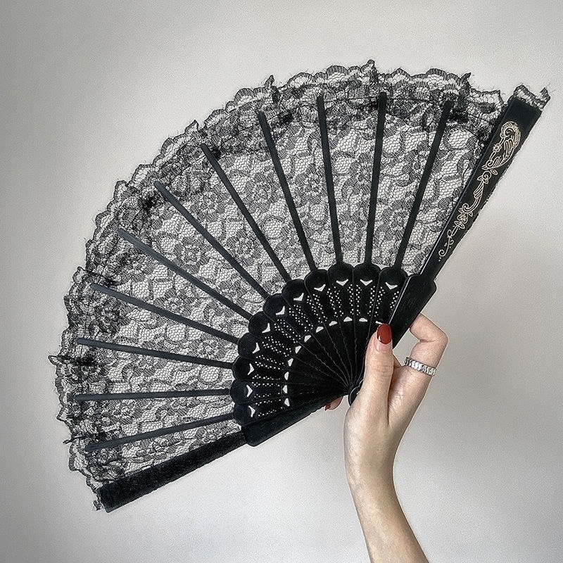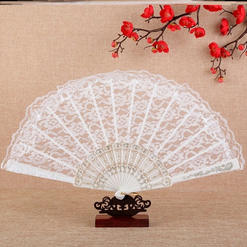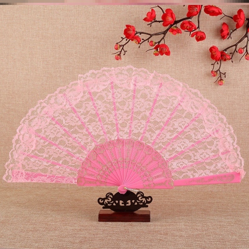 This is a very beautiful folding fan with lace, made of wood, with elegant and elaborate patterns in Chinese style. Beautiful and practical, smooth opening and closing, suitable for stage performances, a good gift for lovers, family, friends, and colleagues
