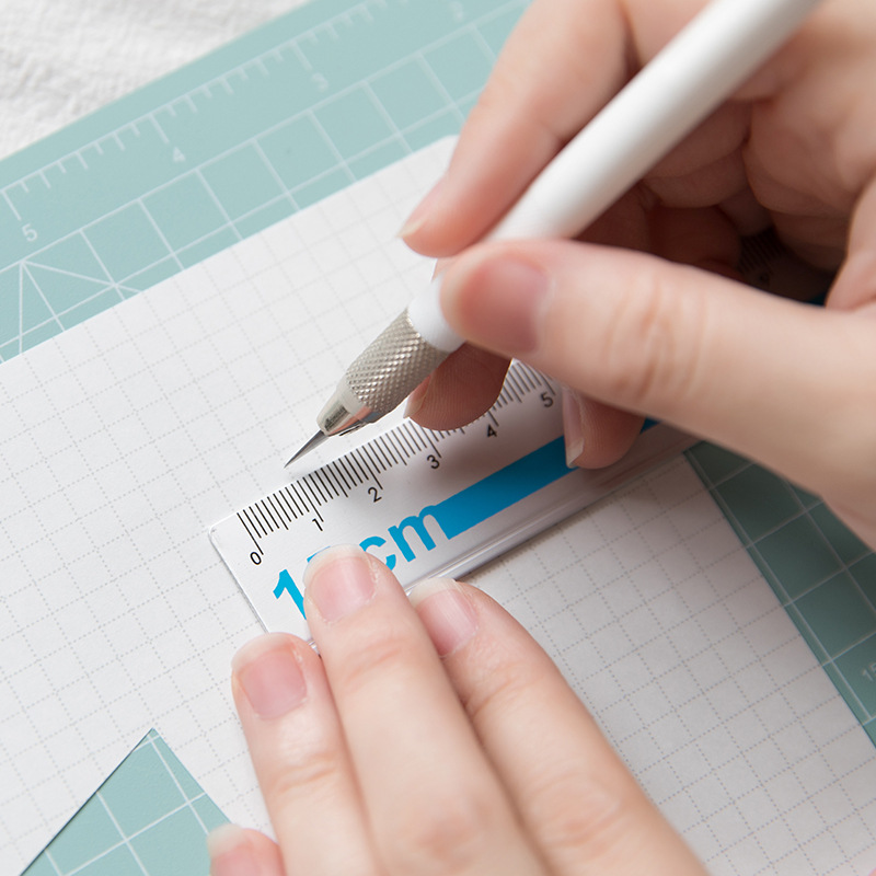 Art pen knife cutting board*1(set)=Backing board*1, ruler*1, pen sharpener*1, blade*1