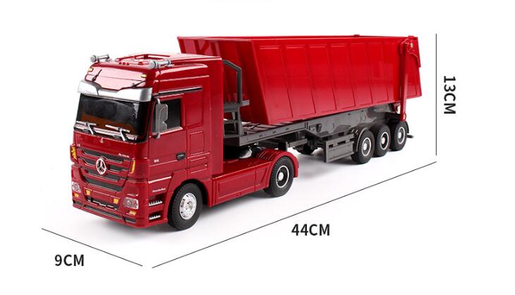 Color: red dump truck, blue dump truck, yellow dump truck, white dump truck