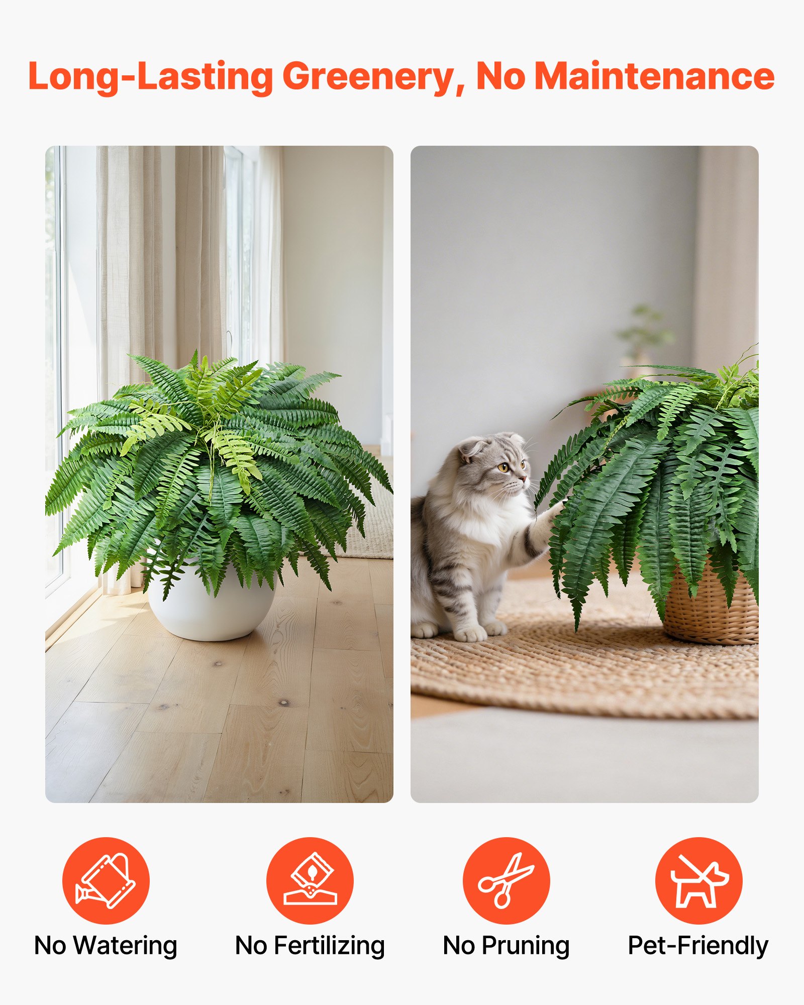 Versatile Decor: Our lightweight fern ferns can be displayed in hanging baskets, planters, or on the floor. Ideal for home, garden, office, weddings, and parties, it adds natural charm to any space. Note: Pot not included