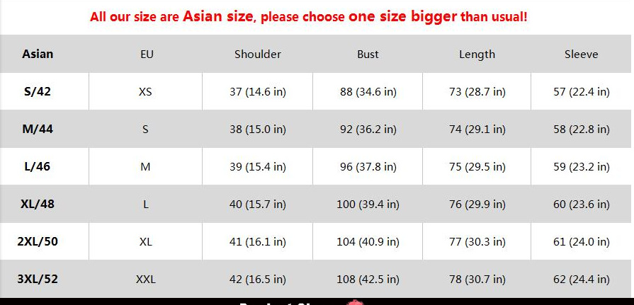 1. Asian sizes are 1 to 2 sizes smaller than European and American people. Choose the larger size if your size between two sizes. Please allow 2-3cm differences due to manual measurement. 2. Please check the size chart carefully before you buy the item, if you don't know how to choose size, please contact our customer service.3.As you know, the different computers display colors differently, the color of the actual item may vary slightly from the following images.