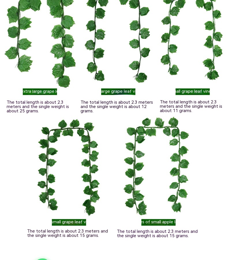 Color: 20 small leaves, 20 large leaves, 20 large leaves, 30 small leaves, 30 large leaves, 36 small leaves, 30 Apple leaves, 66 three-dimensional grape leaves, green grape cluster, purple grape cluster, ribbon