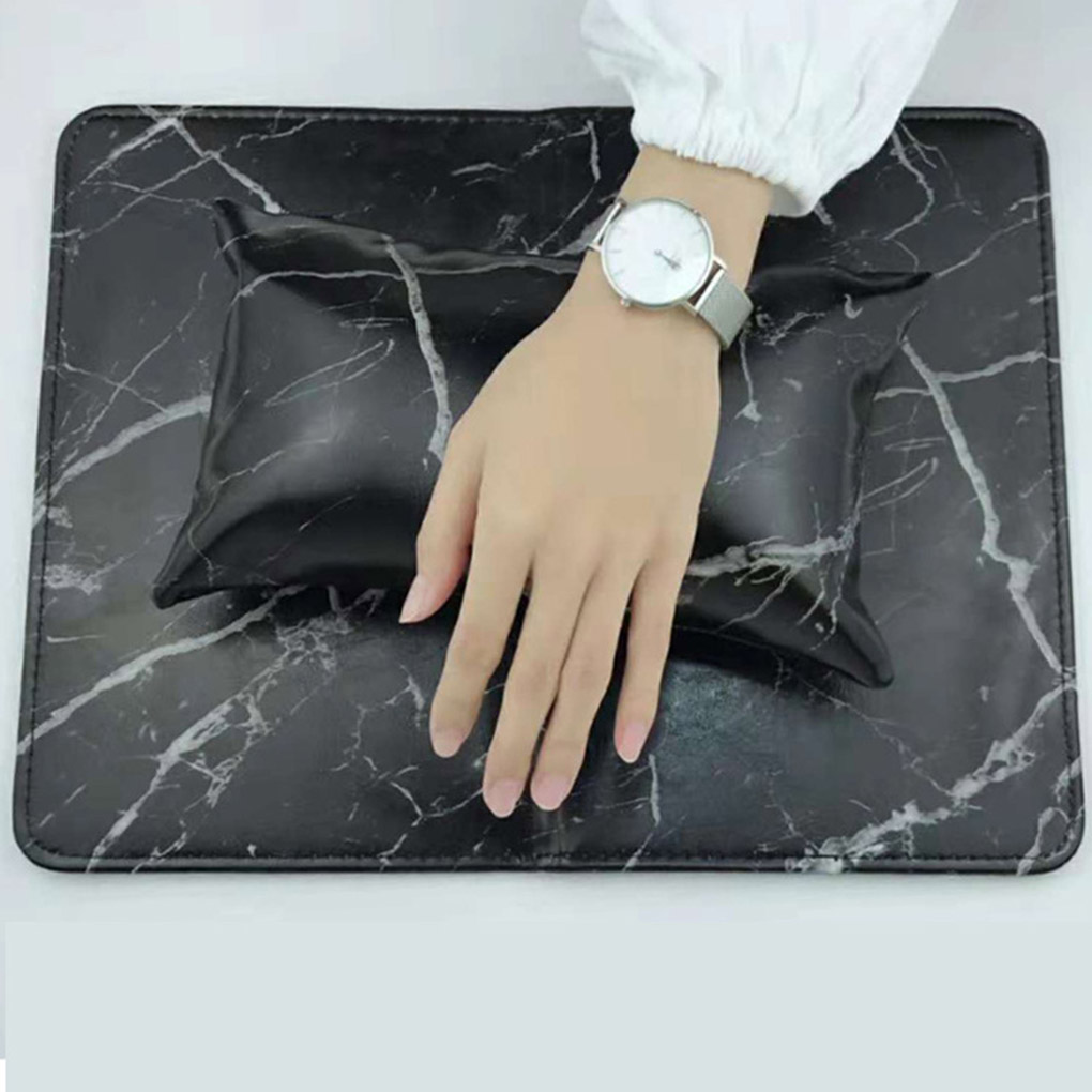 Material: artificial leather.Table mat: 38.7 x 29.5 x 1 cm.Hand pad: 25 x 9 x 5.5 cm.Color: black, white.