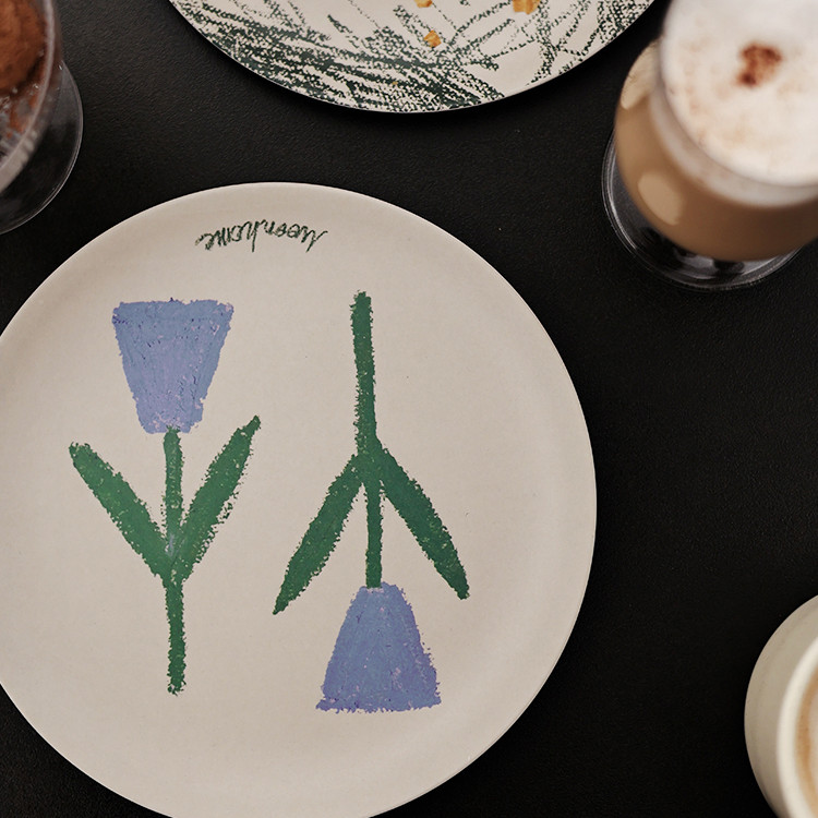 Color classification: Color crayon lines, color blue and purple flowers, transparent crayons + flowers