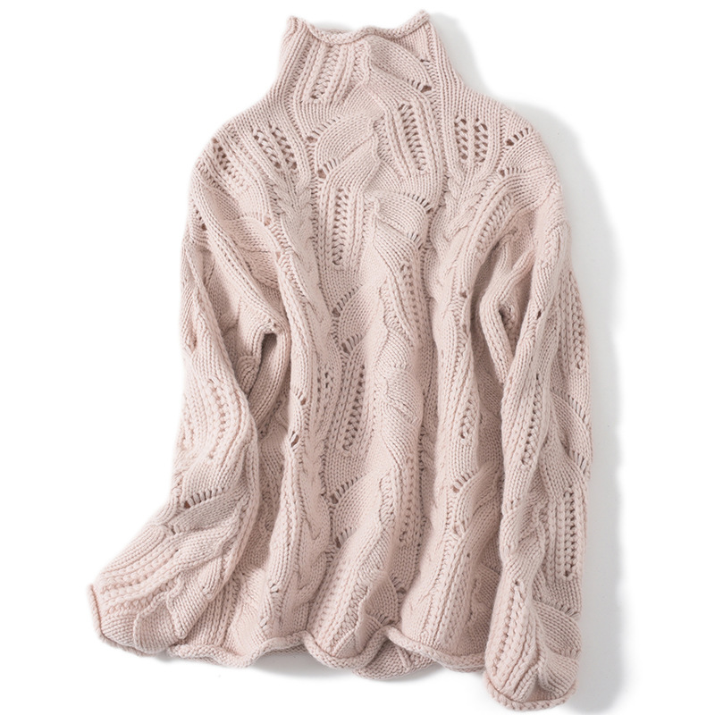 Artistic Mesh Sweater Pure Cashmere Shirt Women's High Neck Thickened Fashionable