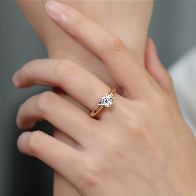 Color: R1271 Champagne Gold Pagoda ring, R1272 White Diamond Pagoda ring