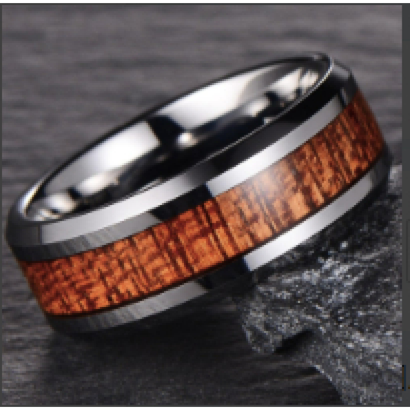 Asgard Crafted Handcrafted Stainless Steel Celtic Tree Of Life And Wood Inset Wedding Ring