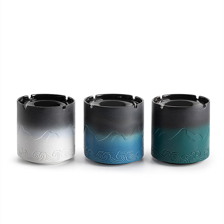 Color: ashtray (white sand glaze), ashtray (navy blue glaze), ashtray (green glaze)