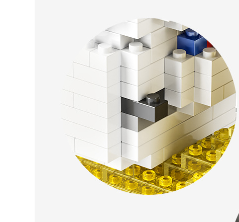 Plastic building block type small particles