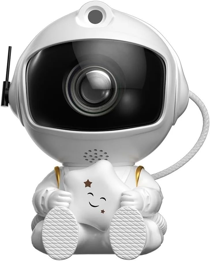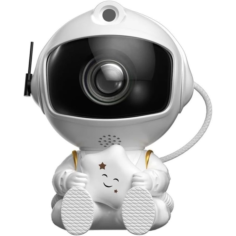 Specifications: Type: Astronaut Starry Sky Projector Product Colour: White Main Material: ABS, Vinyl RGB-LED Power: 5W Starry Sky Colour: RGB Multicolour, Adjustable Power Supply: USB 5V 1A Remote Control: 10m Infrared Remote (requires AAA batteries, not included)