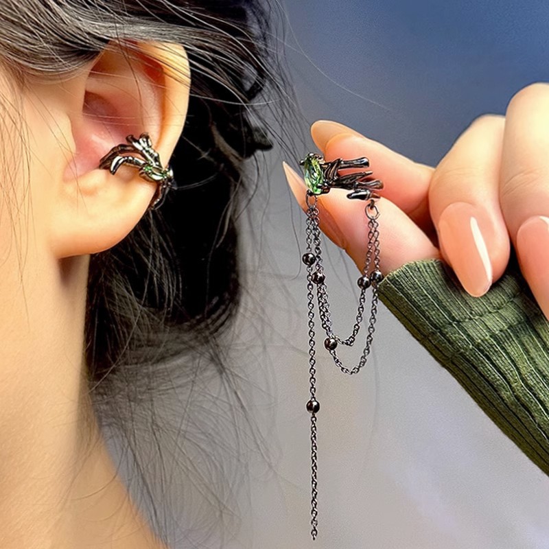 Color: Tassel Gunmetal Black Asymmetrical Ear Cuff