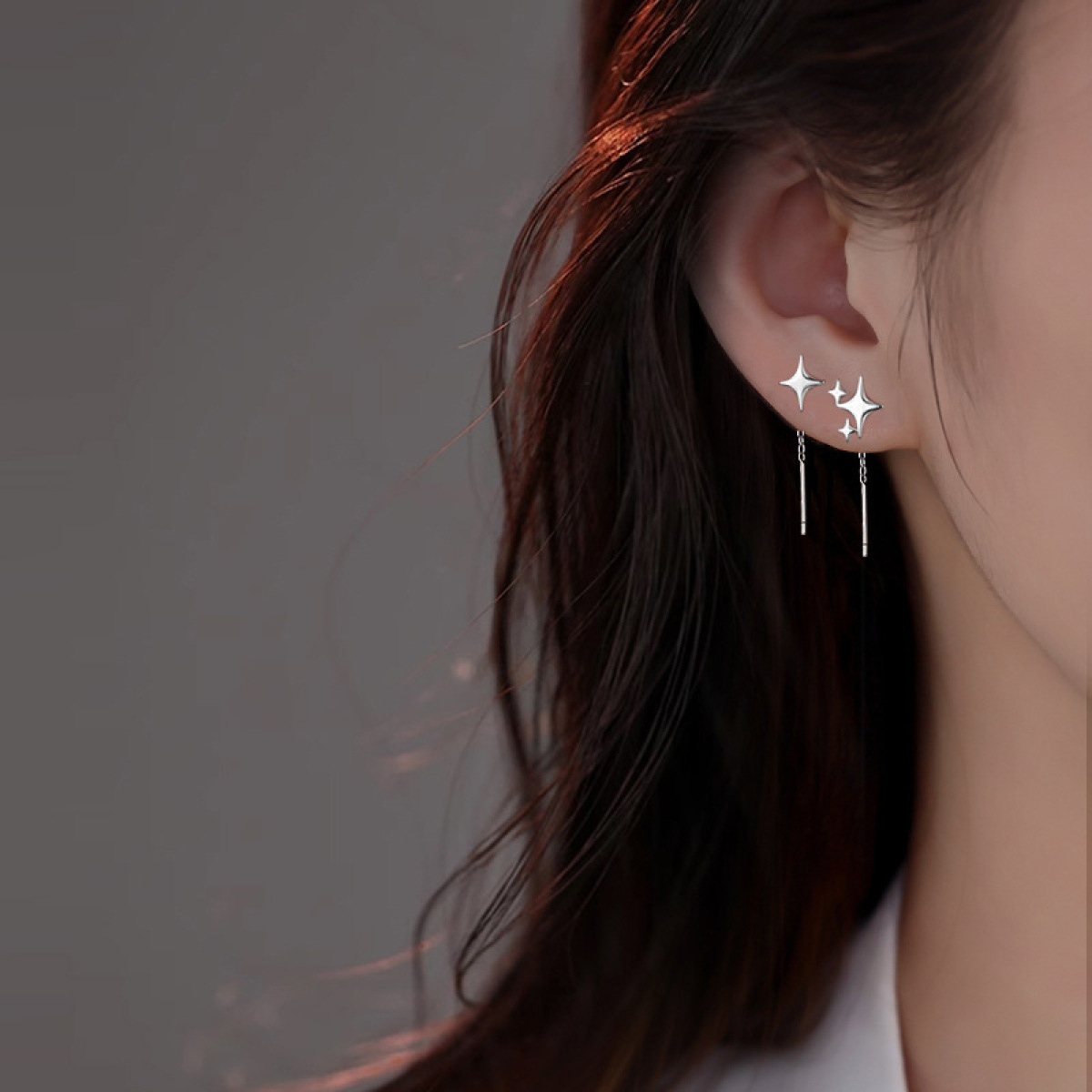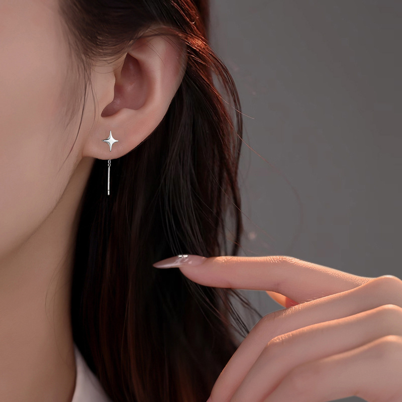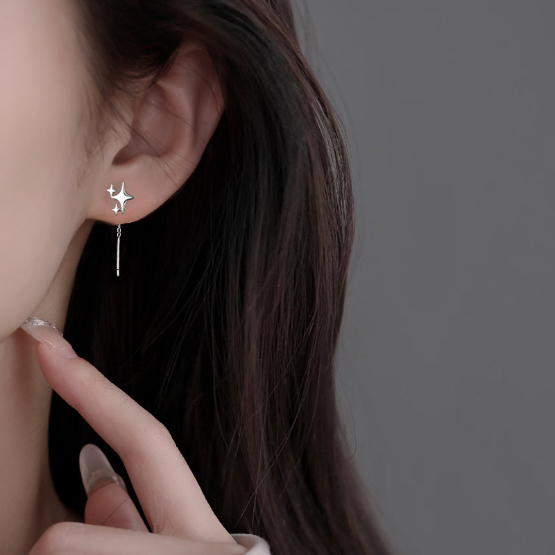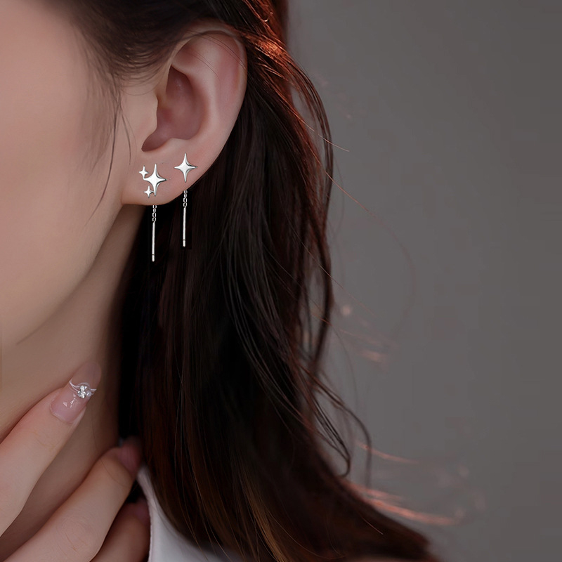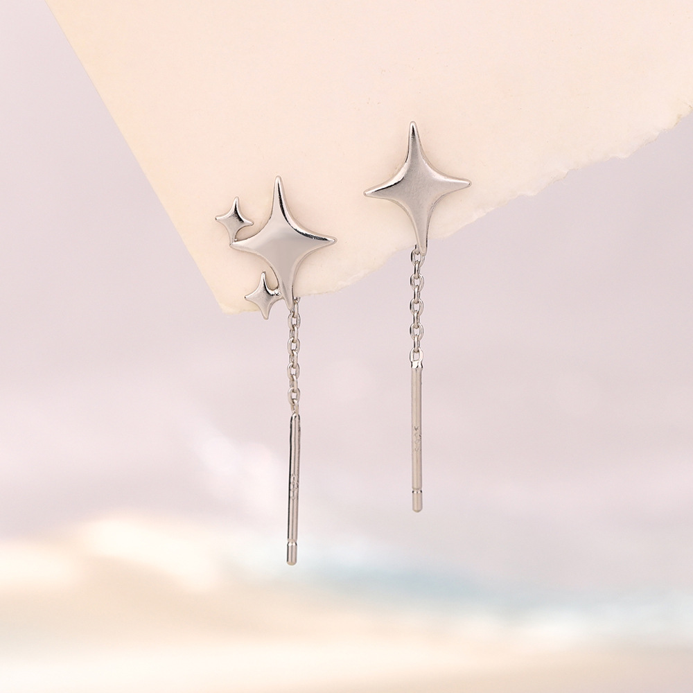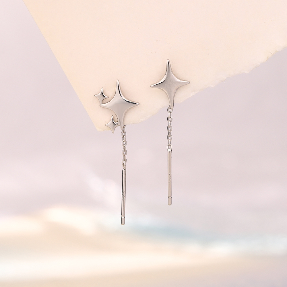 Color: asymmetric four octagonal star drop earrings