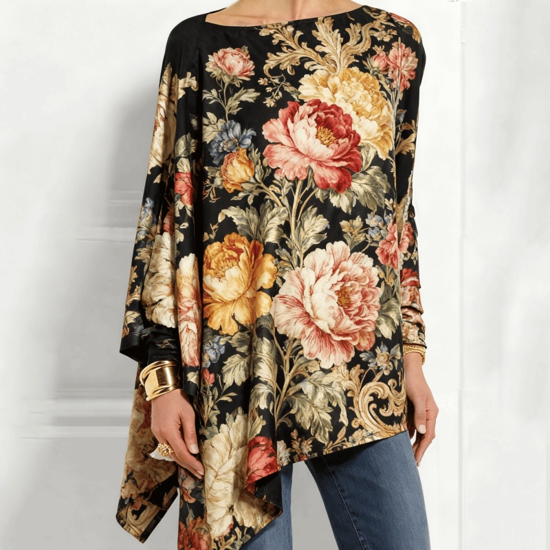 Asymmetrical Blouse In Vintage Floral Baroque Print