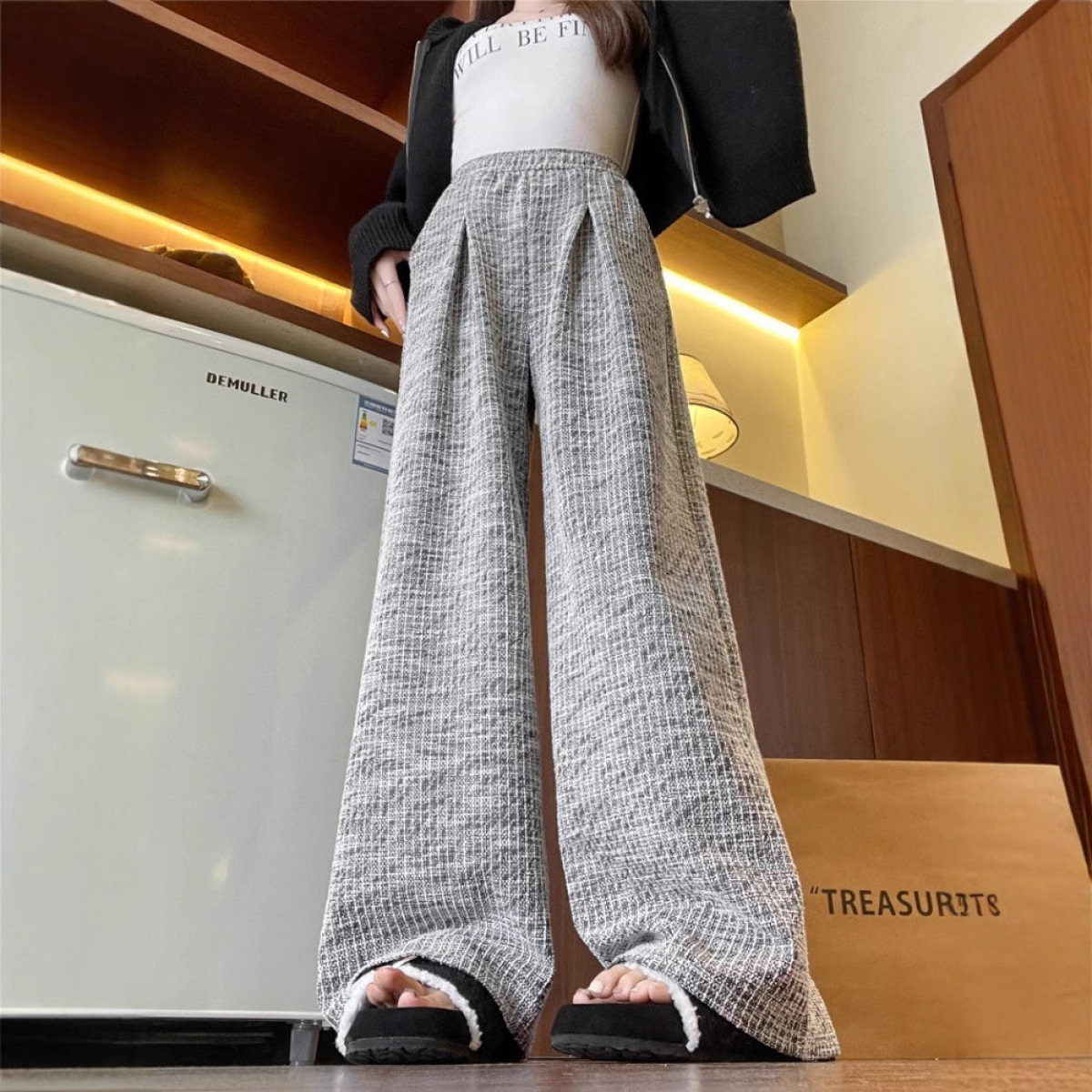 Atmosphere Gray Plaid Women Loose And Idle Slimming And Wide Leg Casual Pants