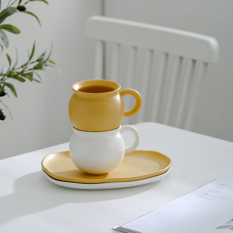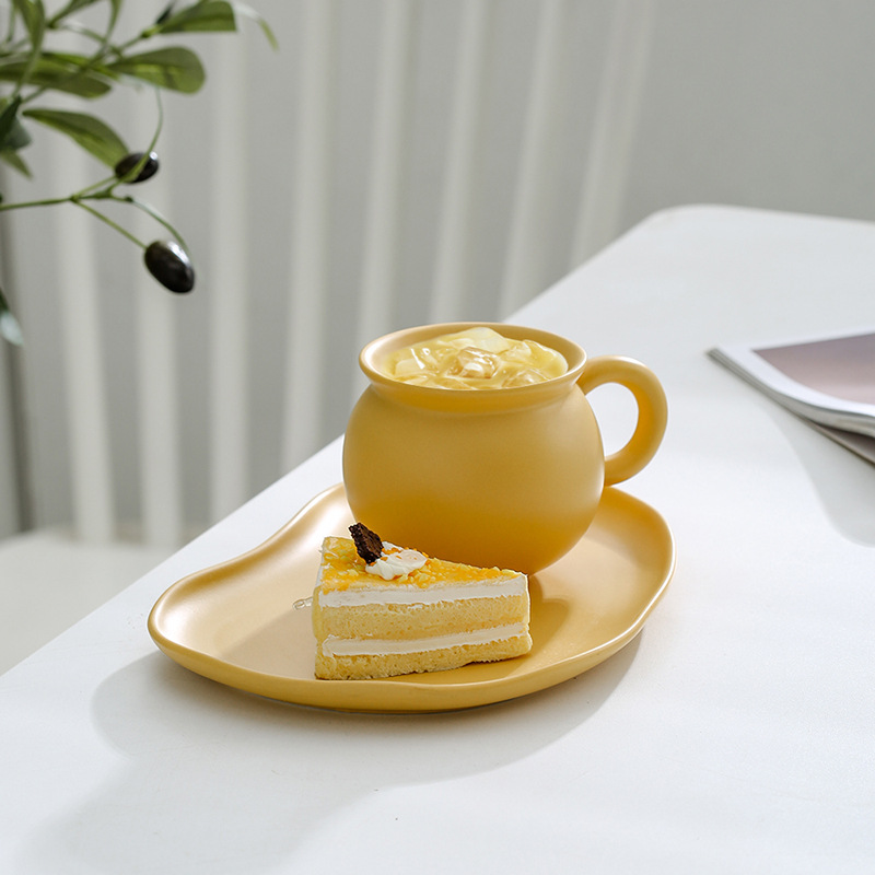 Color: honey pot cup 300ml (mustard yellow), honey pot cup 300ml (splash ink white), 8.5 inch broad bean dish (mustard yellow), 8.5 inch broad bean dish (splash ink white)