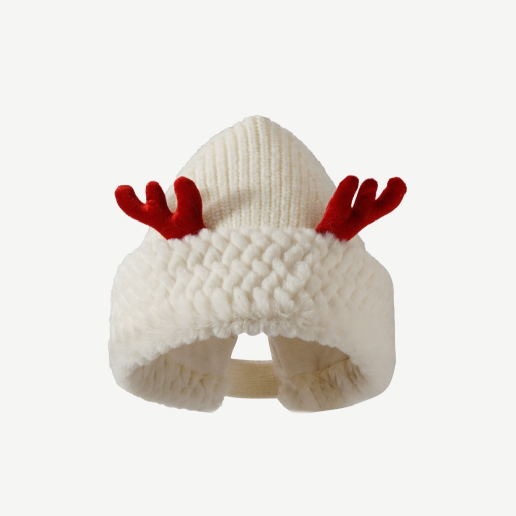 Atmosphere Red Christmas Cute Deer Horn Plush Knitted Hat Women