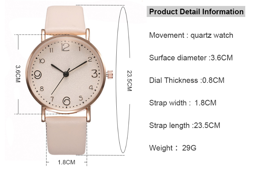 Clasp Type: Buckle Band Width: 18mmCase Thickness: 8mmBand Length: 23.5cmCase Shape: ROUNDDial Diameter: 36mm