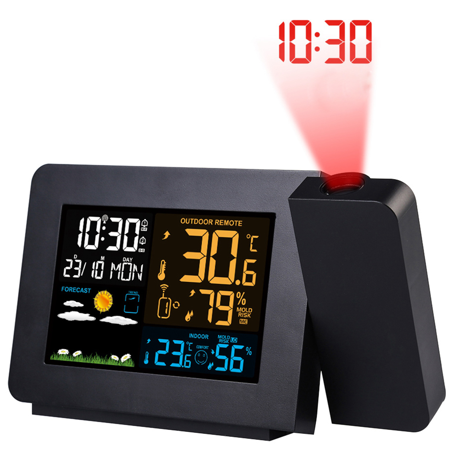 *Multi-Functional Clock & Adjustable Brightness*:Designed with 4.33in ultra-clear screen,you can easily view the time,date,weekday,indoor and outdoor temperature,humidity,weather forecast,mold alert and mold risk,heat index and more information,bringing much convenience to your life!Besides,4 brightness levels can be adjusted according to your need.