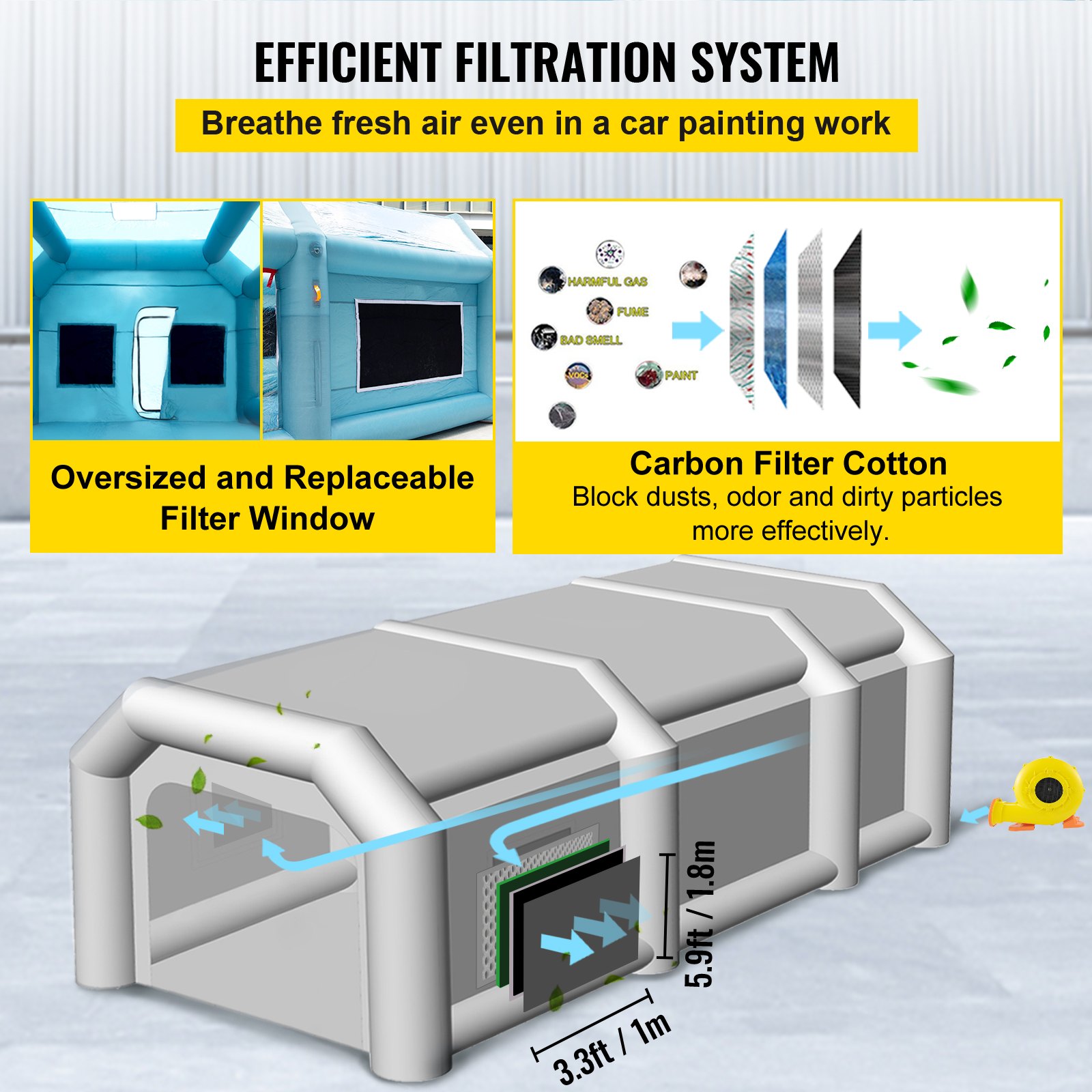 VEVOR Aufblasbare Sprühkabine Zelt 6x3x2,5m Aufblasbare Lackierkabine Zelt 210D Oxford-Gewebe PVC Autozelt mit 2 abnehmbaren Türen Gebläse inkl. Ideal für Autolackierung und Reparatur von Motorrädern