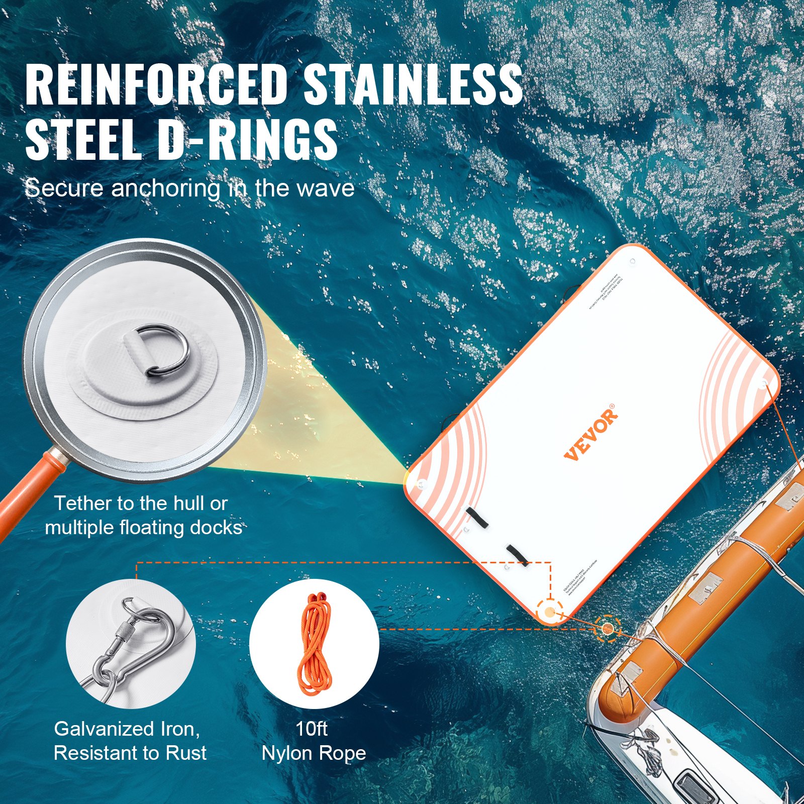 Material des Schwimmstegs: gebürstetes, rutschfestes PVC-Gewebe,Produktgewicht: 32,63 lbs / 14,8 kg,Produktabmessungen: 8 x 5 Fu_ / 2,43 x 1,52 m,Artikelmodellnummer: RD244-152,Artikelfarbe: Wei_ + Orange,Artikelhöhe: 6 Zoll / 152 mm,D-Ring-Material: Edelstahl