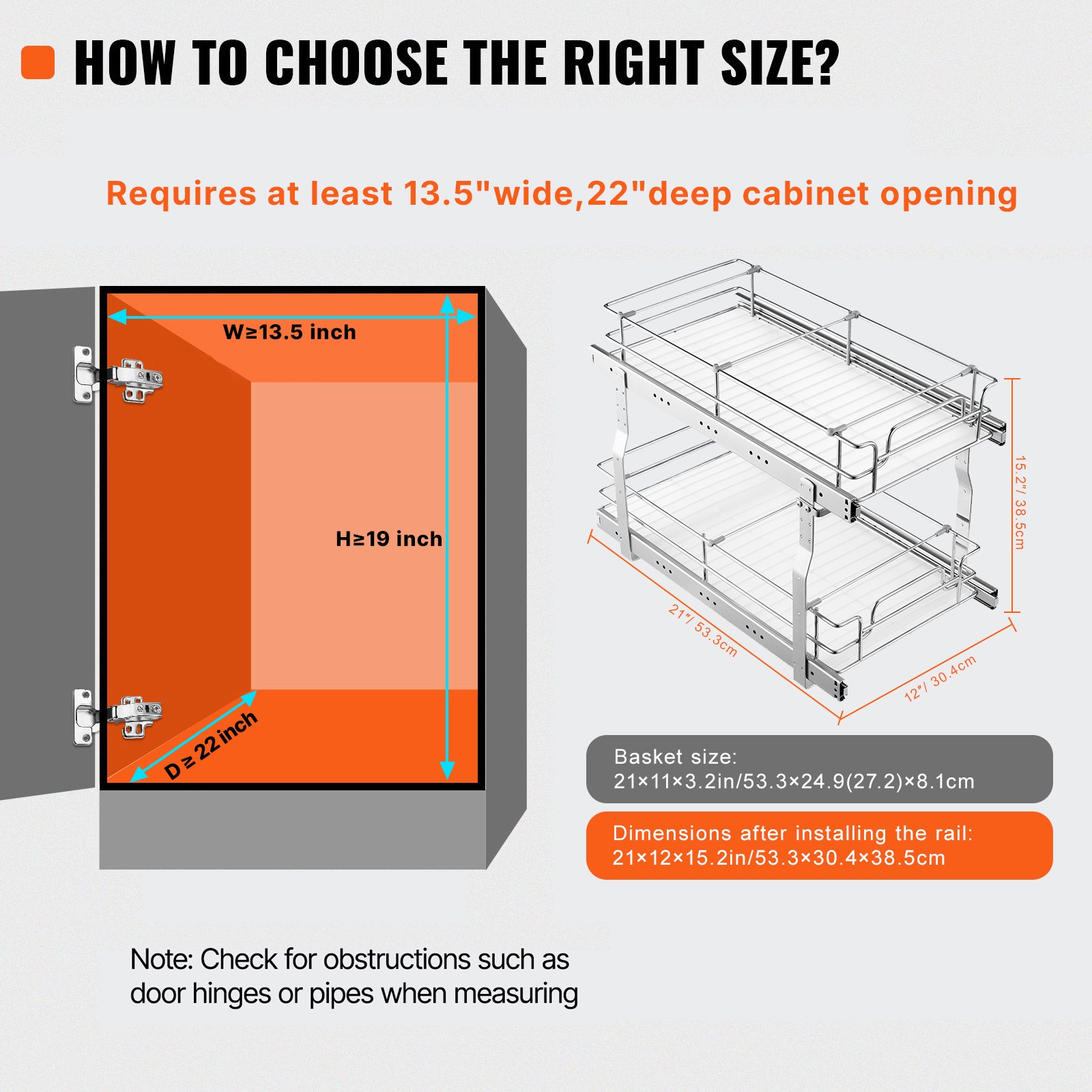 VEVOR Ausziehbarer Spülschrank-Organizer mit 2 Ebenen unter Waschbecken (249x539x81 mm) Gewürzregal Küchenregal Lagerregal Organizer für Küche Badezimmer 334x563x485 mm (Installationsgrö_e)