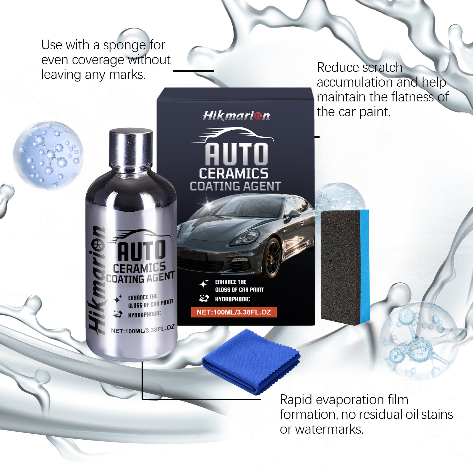 Ceramic coating agent: 100ML*1, towel *1, sponge *1.