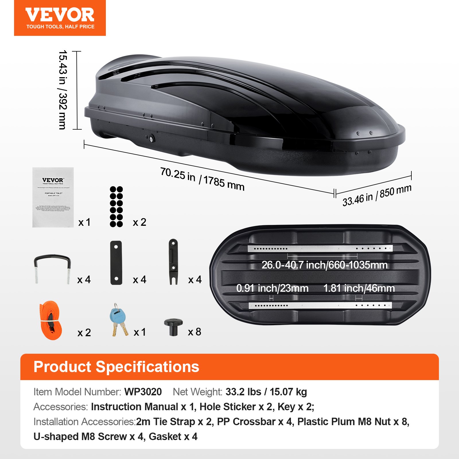Hauptmaterial: ABS,Produktgrö_e: 70,25 x 33,46 x 15,43 Zoll / 1785 x 850 x 392 mm,Maximale Gewichtskapazität: 165 lbs / 75 kg,Lagerkapazität: 11 Kubikfu_ / 340 L,Nettogewicht: 33,2 lbs / 15,07 kg,Artikelmodellnummer: WP3020
