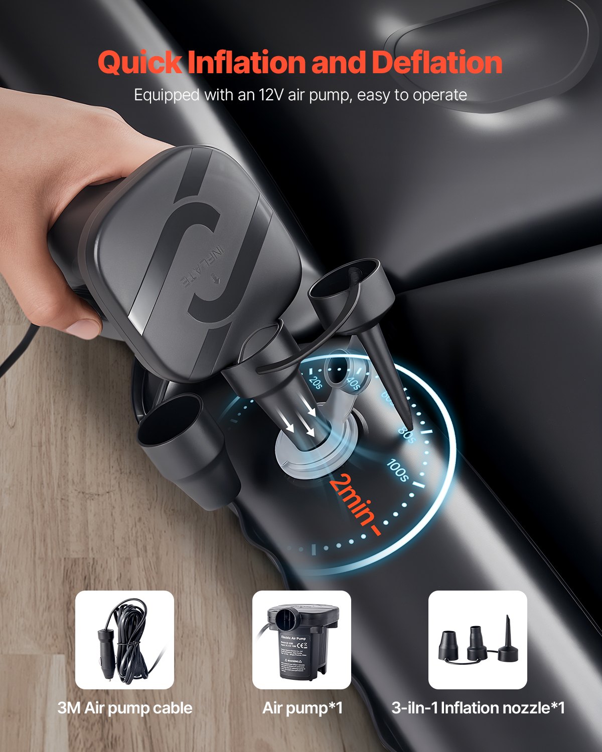 VEVOR Auto Luftmatratze aufblasbare Campingmatratze beflockte & verdickte Reisebetten tragbare Isomatte mit Luftpumpe & 2 Kissen & Düse & Tragetasche, für die meisten SUV MPV Limousinen, Schwarz