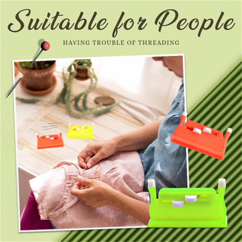 The DIY Auto Needle Threader works for any size of thread , especially fitsfor threading those needles with small needle eye . Suitable for most sewingworks , leather , denim , silk , canvas and cotton , different size needles can beapplied to cross stitch , decorative stitching and embroidery .