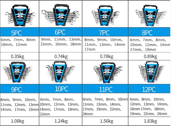 Model: BSTZ-11 Material: Chrome-vanadium alloy steel Origin: Mainland China Province: Zhejiang Province: Ningbo City 8PC Ordinary Toxic Wrench 9PC Ordinary Toxic Wrench 10PC Ordinary Toxic Wrench 11PC Ordinary Toxic Wrench 12PC Ratcheting Combination Wrench 5PC Ratcheting Combination Wrench 6PC Ratcheting Combination Wrench 7PC