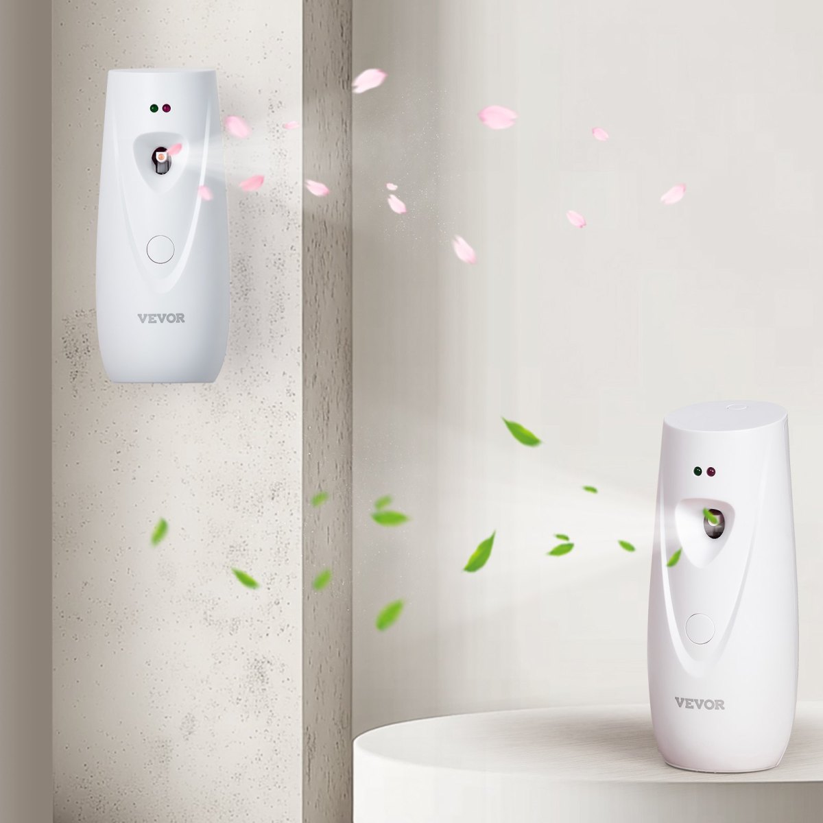 Automatic Air Freshener Spray Dispenser, 2-Pack, Wall Mounted Or Free Standing, Battery Operated, Multiple Time Settings For Home, Indoor, Bathrooms, Offices, Hotels, Commercial Places, White